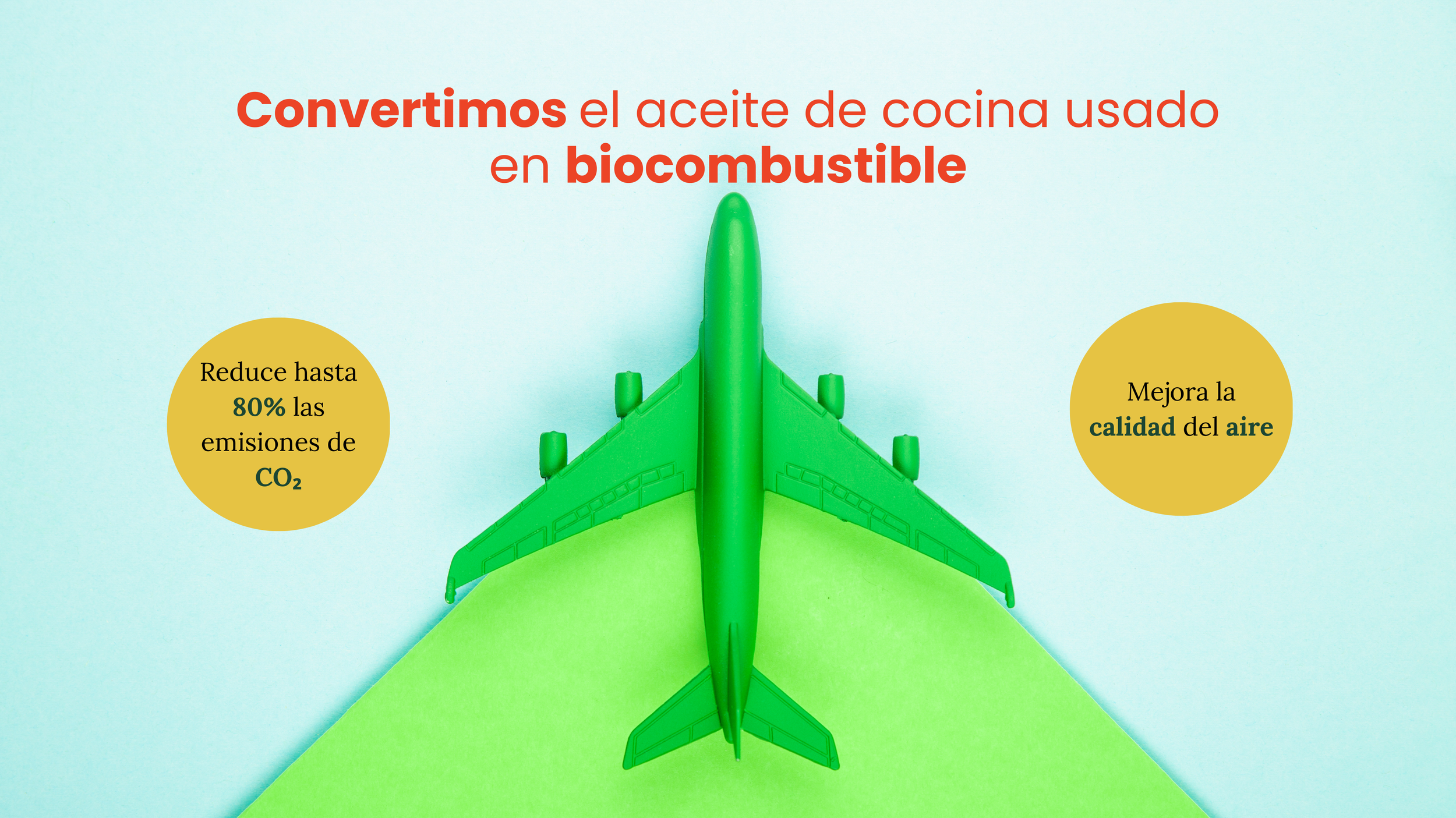 Finalmente, el aceite se convierte en biocombustible, el cual reduce hasta en un 80% las emisiones de CO2.