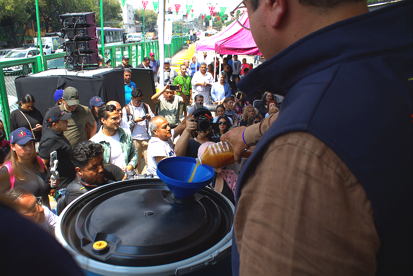 Cuauhtémoc es la primera alcaldía de la CDMX en instalar este tipo de contenedores accesibles al público. El aceite recolectado por Kolibrie va directamente al proceso de producción de biocombustibles.